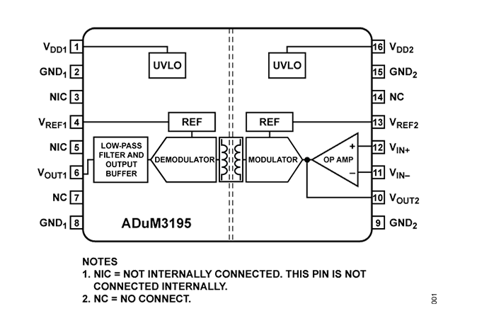 Les modèles ADuM3195 sont des amplificateurs d’isolement basés sur la technologie iCoupler® d’Analog Devices, Inc. Les ADuM3195 ont une très faible erreur de décalage et de gain, ce qui les rend idéaux pour de nombreuses applications de détection de tension isolées.